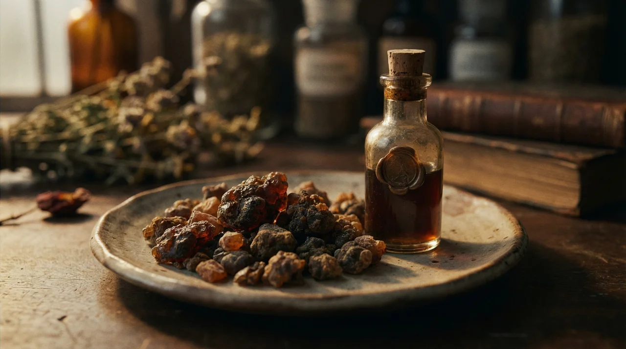 Myrrhe ist ein harziges Gummiharz, das vom Commiphora-Baum gewonnen wird. Dieser Baum wächst vorwiegend in den trockenen Regionen Afrikas und Arabiens. Schon im alten Ägypten nutzten Menschen Myrrhe zur Einbalsamierung und Wundbehandlung. Die traditionelle Medizin schätzt das Harz seit über 3000 Jahren.