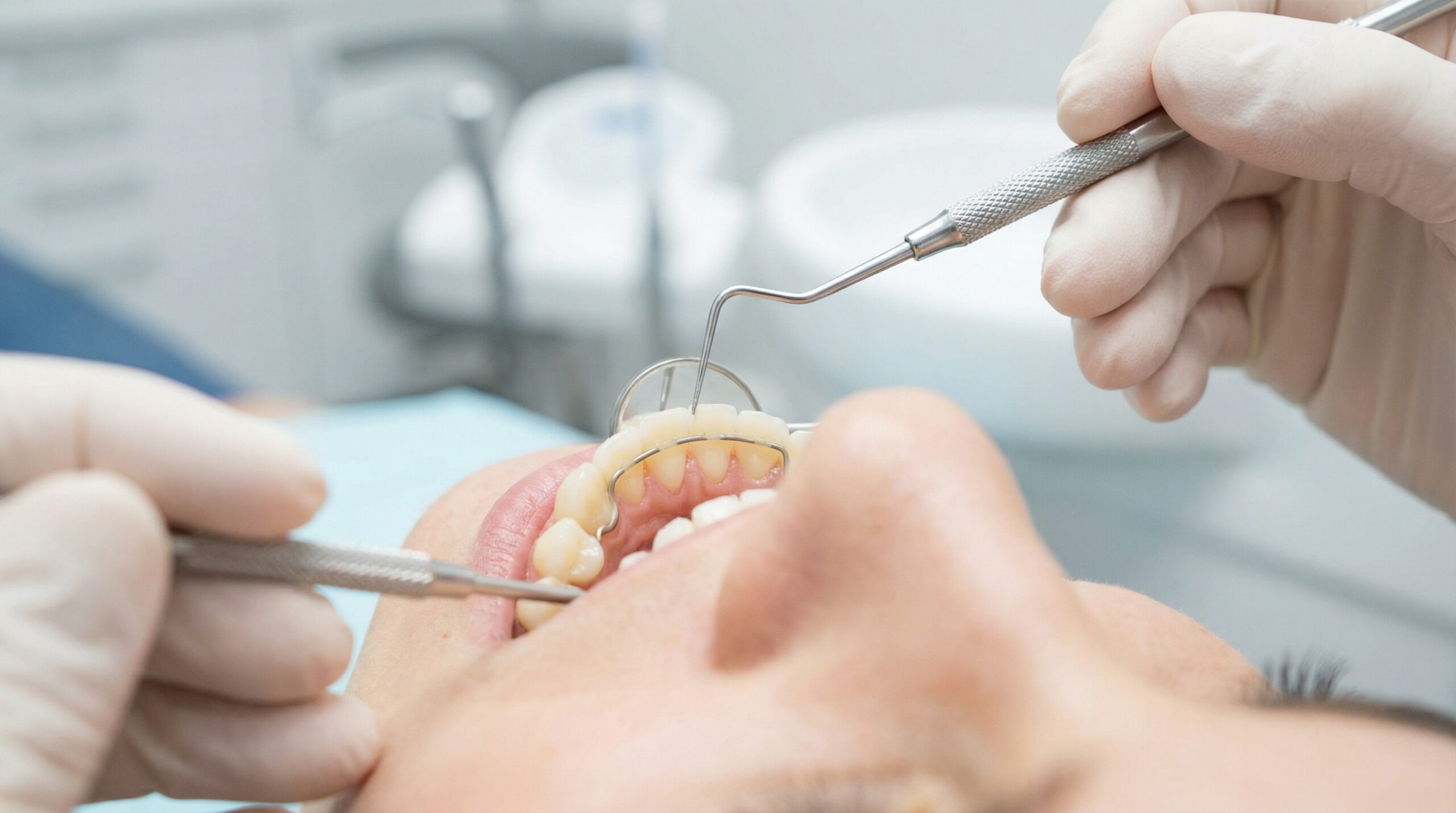 - Zustandsprüfung: Bewertung des Retainers und der umgebenden Zähne